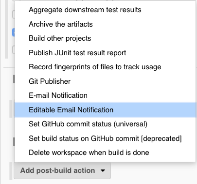 从Add post-build action菜单中,选择Editable Email Notification: