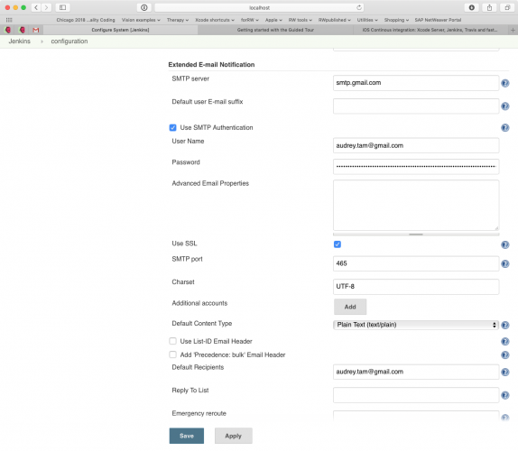 完全向下滚动到(普通旧的)E-mail Notification,然后单击Advanced…:您的所有电子邮件设置应该已经在这里;如果没有,请再次输入。