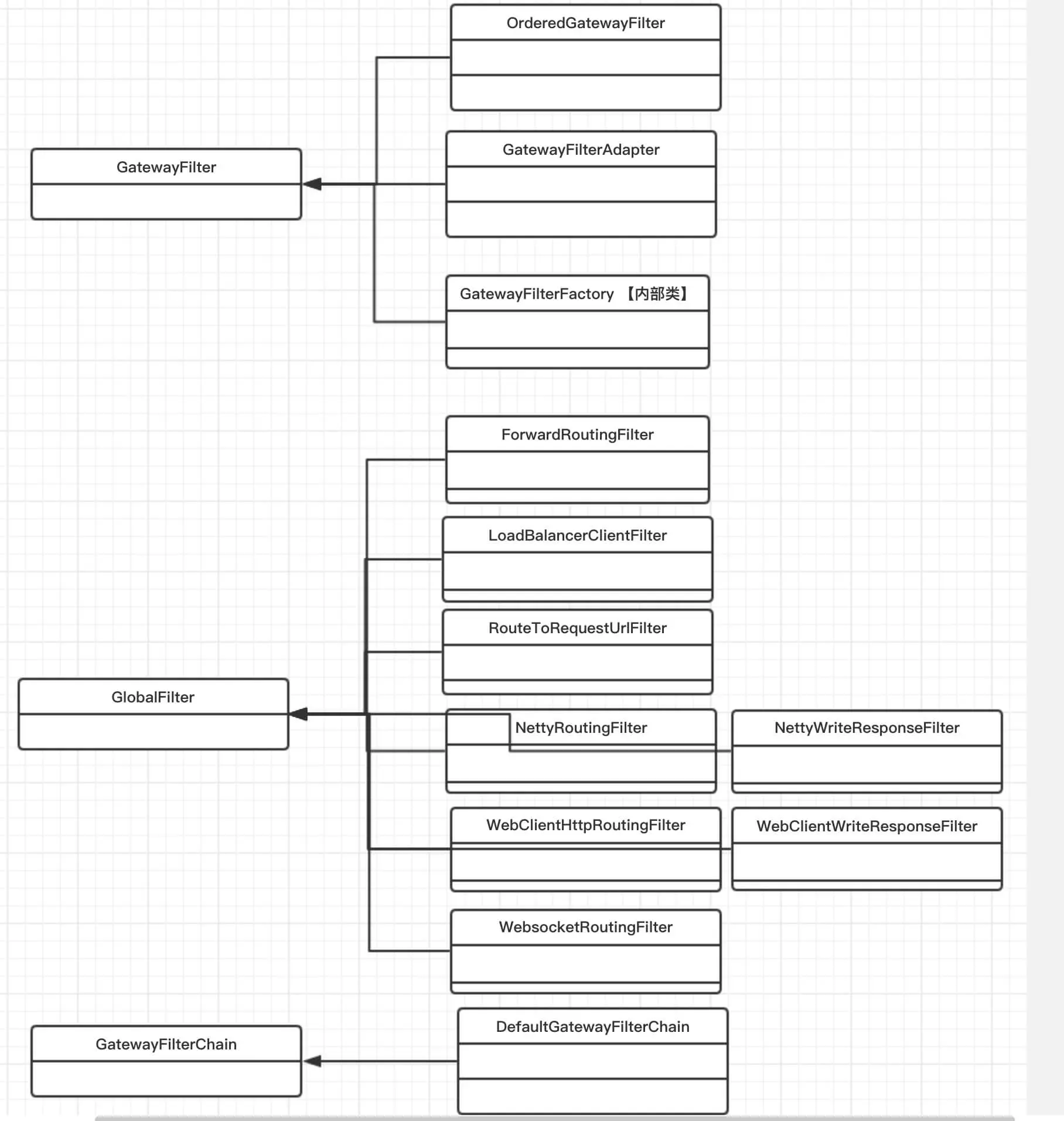org.springframework.cloud.gateway.handler.FilteringWebHandler.GatewayFilterAdapter ,网关过滤器适配器。在 GatewayFilterChain 使用 GatewayFilter 过滤请求,所以通过 GatewayFilterAdapter 将 GlobalFilter 适配成 GatewayFilter 。GatewayFilterAdapter 代码如下 :