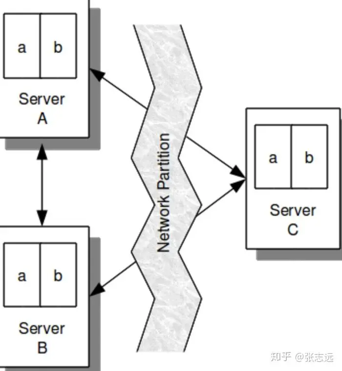 在上边的网络结构中,我们可以猜到系统可能存在一个很大问题,就是网络分区。网络分区指的是由于网络分离造成系统分裂为两个集群,各自相互不信任。对应无状态的系统,几乎没有影响,正常处理请求,比如nginx;数据系统出现分区问题时,如果系统设计或者配置存在不合理就会导致数据不一致,而这个问题修复起来会非常复杂,所以 elasticsearch , etcd, mongdb 等天生支持分布式的数据系统中,都有机制避免由于网络分区导致的数据不一致问题,解决方式是让集群大多数能正常通信的节点正常服务。比如你的集群是有 5 个节点,分区导致一个分区 2 个节点,一个分区 3 个,那么 2 个节点的分区就会被认为是异常的,不能正常提供服务,这里也会有一些特定的算法可以解决类似的问题,如raft。
