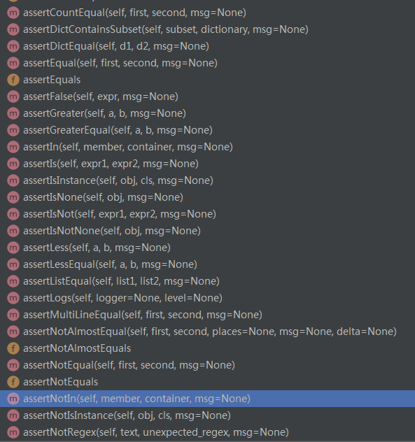 unittest.TestCase 类中提供了很多断言方法, 通过这些断言方法,我们就可以检查程序逻辑是否符合预期。