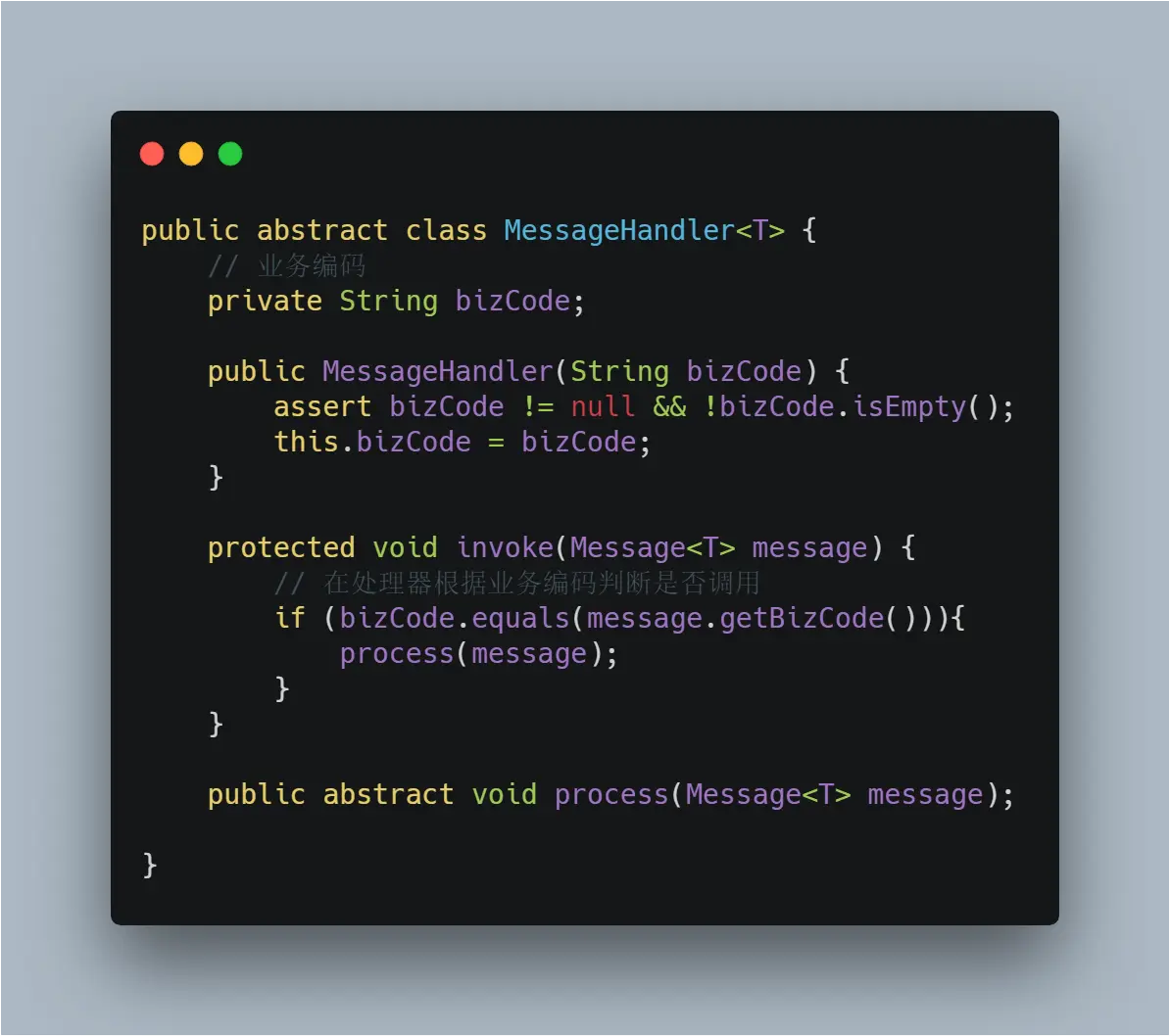 例子:开发中很多场景下会采用消息中间件解耦,如何对消息处理统一管理呢?可能刚开始考虑不全会导致后续开发无奈地采用if-else来打补丁似的完成需求,但这种情况下经常reopen已稳定运行在线上的代码,不可避免会有机率因为更改造成线上故障。那么如何秉持开放封闭原则来统一处理呢?