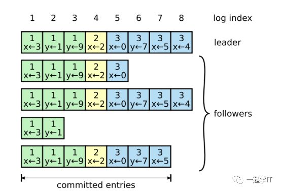 领导人来决定什么时候把日志条目应用到状态机中是安全的;这种日志条目被称为已提交。Raft算法保证所有已提交的日志条目都是持久化的并且最终会被所有可用的状态机执行。在领导人将创建的日志条目复制到大多数的服务器上的时候,日志条目就会被提交。同时,领导人的日志中之前的所有日志条目也都会被提交,包括由其他领导人创建的条目。