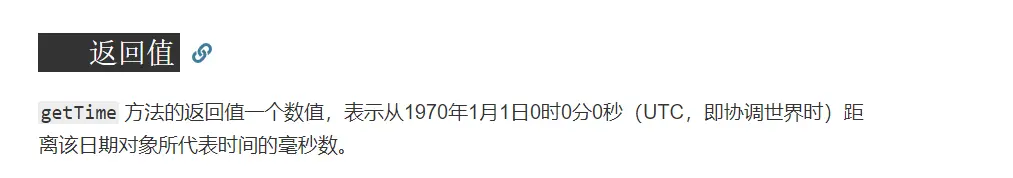 定义:返回一个时间的格林威治时间数值(返回值是数值类型)。表示从1970年1月1日0时0分0秒(UTC,即协调世界时)距离该日期对象所代表时间的毫秒数(出自于MDN)