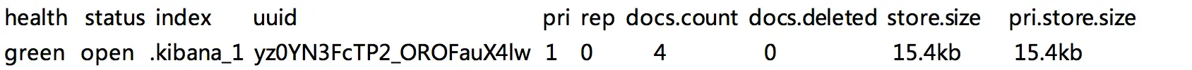 从结果中我们可以看到索引的健康情况、状态、索引名称、uuid、primary shard个数、replica shard个数、document 个数、被标记为deleted的document 的个数,索引大小、primary shard大小。