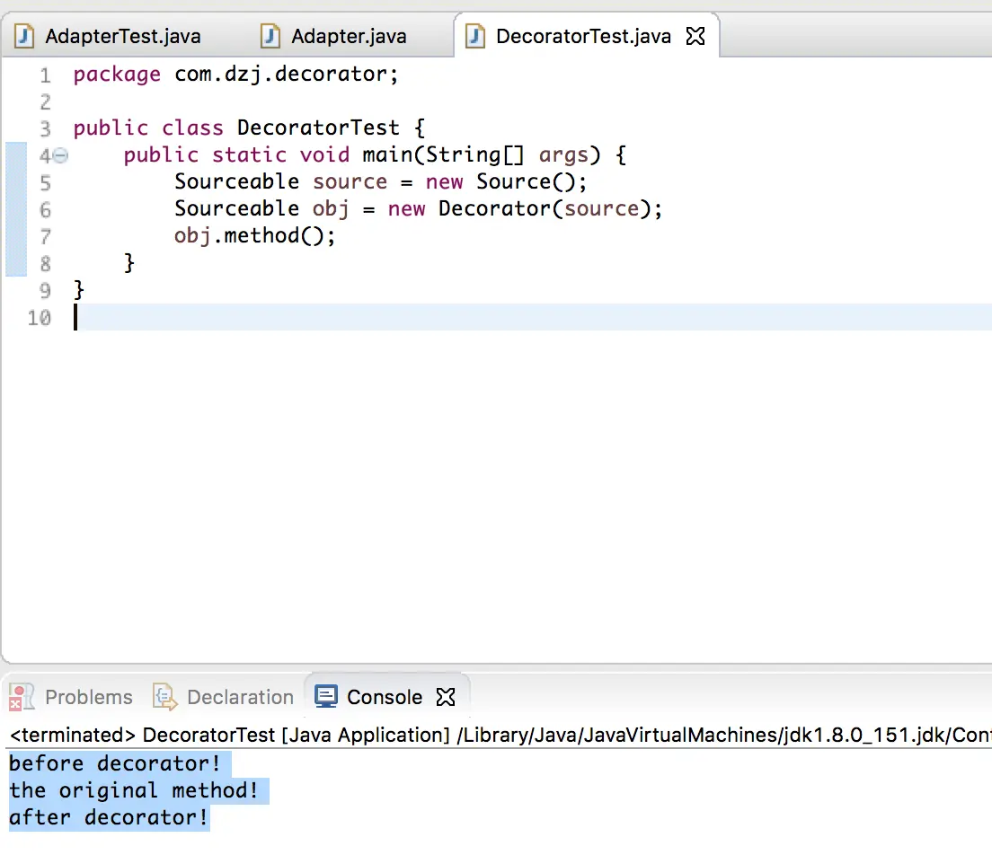 顾名思义,装饰模式就是给一个对象增加一些新的功能,而且是动态的,要求装饰对象和被装饰对象实现同一个接口,装饰对象持有被装饰对象的实例。