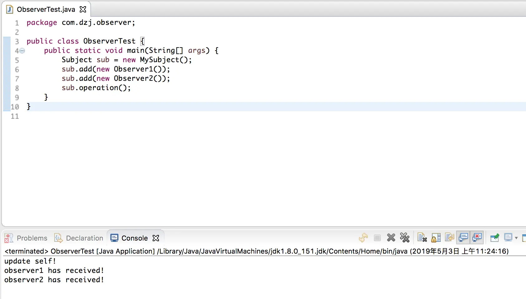 观察者模式很好理解,类似于邮件订阅和 RSS 订阅,当我们浏览一些博客或 wiki 时,经常会看到RSS图标,就这的意思是,当你订阅了该文章,如果后续有更新,会及时通知你。简单来讲就一句话:当一个对象变化时,其它依赖该对象的对象都会收到通知,并且随着变化!对象之间是一种一对多的关系。