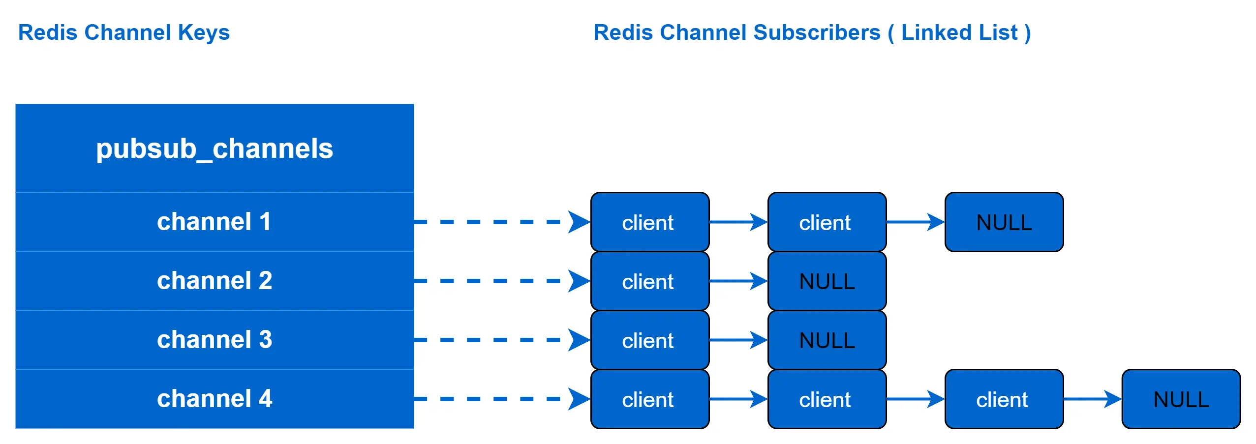 Redis发布/订阅存储结构如下图所示: