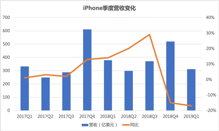 iPhone虽然定价越来越高,但连续两个季度,新iPhone让苹果手机业务的营收与去年同期相比,非但没有丝毫增长,反而减少了160亿美元。