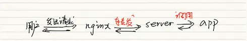 现实生活中,我们部署的时候,可能还会在 server 前面加上一个 nginx,所以整个流程简单来说是这样的: