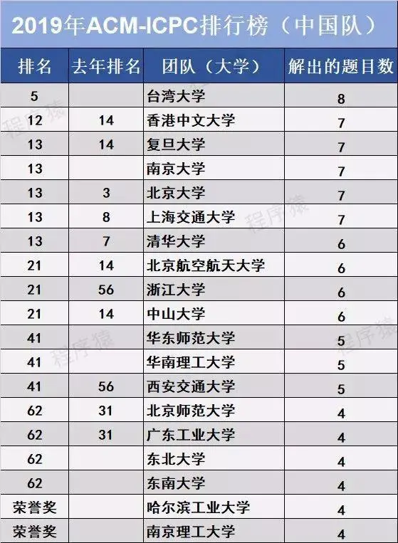 2019年ACM程序设计大赛排行榜(13-62名榜单)