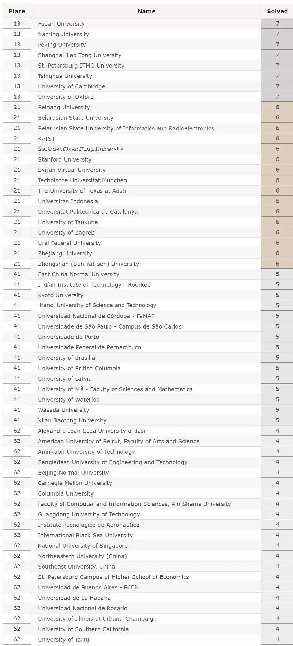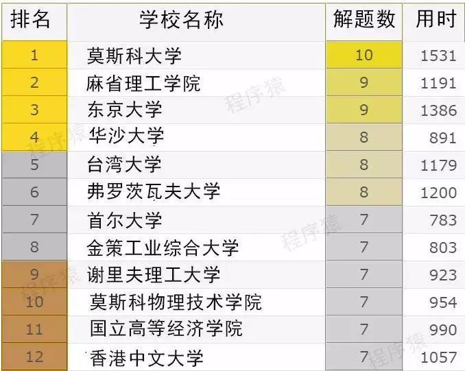 莫斯科大学夺得全球总冠军,解出了10道题,用时1531。