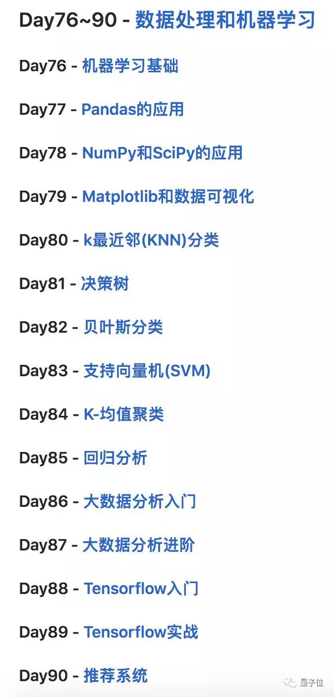 最初的15天,都是Python语言基础的修炼。基本功很重要,每日内容也很丰满: