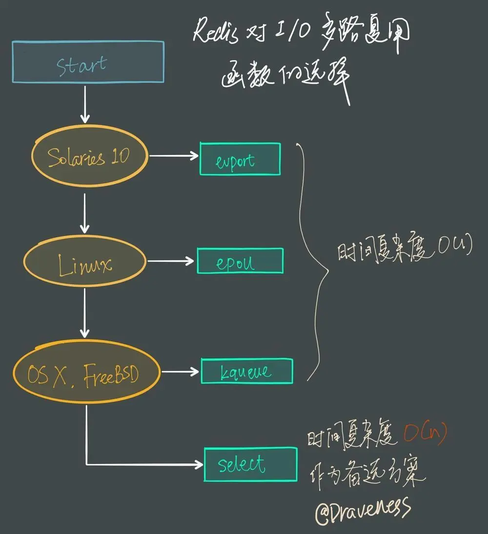 因为 Redis 需要在多个平台上运行,同时为了最大化执行的效率与性能,所以会根据编译平台的不同选择不同的 I/O 多路复用函数作为子模块,提供给上层统一的接口;在 Redis 中,我们通过宏定义的使用,合理的选择不同的子模块:
