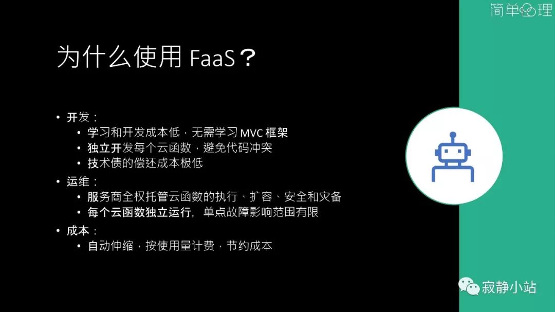 目前 FaaS 在服务商层面其实已经满足了基本可用的需求了。但在企业级开发的过程中,由于缺乏框架和最佳实践,导致难以落地。所以今天我会重点分享一下简单心理在 FaaS 的具体实践经验。