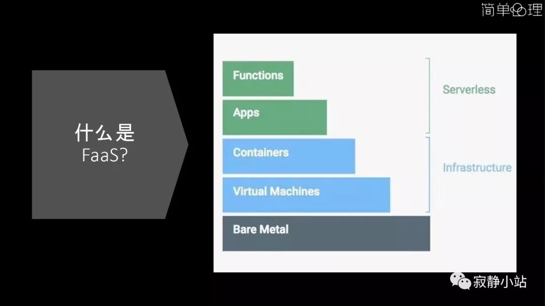 FaaS 是专指 Serverless 服务中的函数服务,开发者只需上传函数,剩下由服务商来负责按需执行和横向扩容等事情。