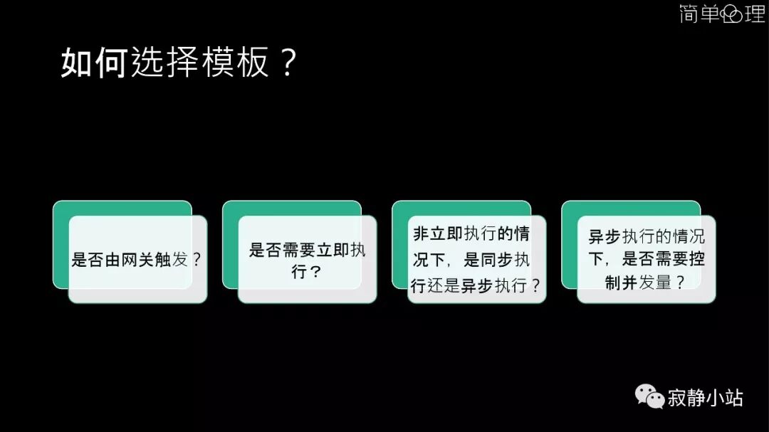 是否由网关触发,将决定是否需要一个网关函数。是否立即执行决定是否仅仅一个网关函数或一个其它类型的触发函数就够了。同步执行或者控制并发量的异步执行,需要有一个调度函数。对于非立即执行的情况,都需要一个执行函数。