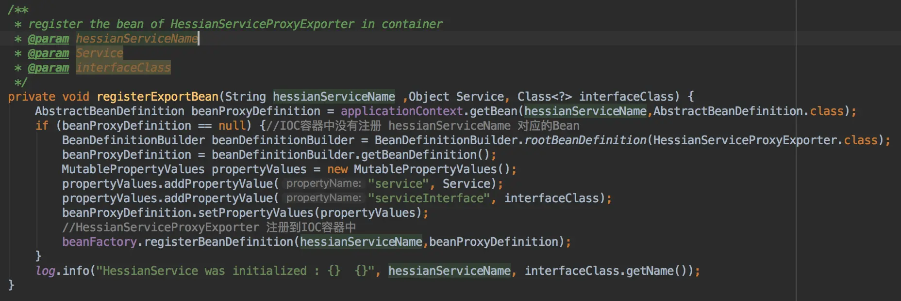 - 将HessianServiceExporter 注册到IOC容器中进行统一管理