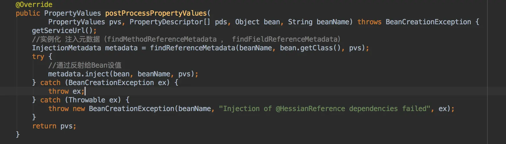 consumer 消费服务,借鉴@Autowired实现思路:继承InstantiationAwareBeanPostProcessorAdapter 重载postProcessPropertyValues方法