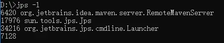 用于显示指定系统内所有HotSpot虚拟机进程,并且能显示虚拟机执行主类以及本地虚拟机唯一ID(LVMID,Local Virtual Machine Identifier)功能单一,但是其他因为其他工具都需要指明LVMID(来确定要监控的虚拟机进程,所以都需要用到它。对于本地的虚拟机进程来说LVMID和操作系统的进程ID一致。