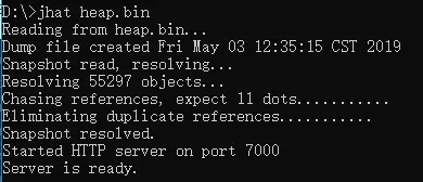 这个就是和jmap搭配使用的,jmap导出来的堆快照文件用jhat 打开分析