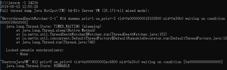 用于生成虚拟机当前时刻线程快照(threaddump或javacore)。主要用来定位线程出现长时间停顿的原因,判断死锁啊,死循环的等。通过jstack就可知各线程的调用堆栈情况。