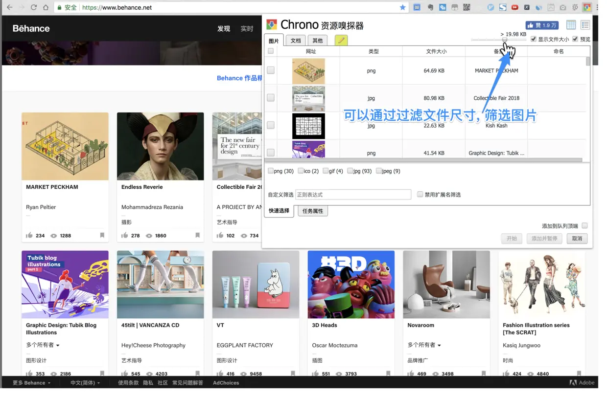 chrono可以对浏览器可见的页面进行资源嗅探, 并批量下载静态资源, 相当于爬虫,如果你是一个设计师, 对批量下载图片情有独钟, 又懒得写爬虫程序, 这个"资源嗅探"的功能或许能提升你下载图片的效率