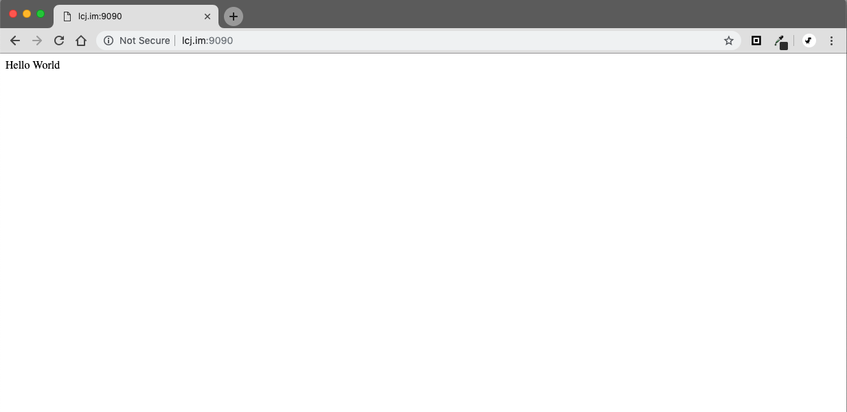 访问这个地址:lcj.im:9090/,可以看到输出的 hello world 了。