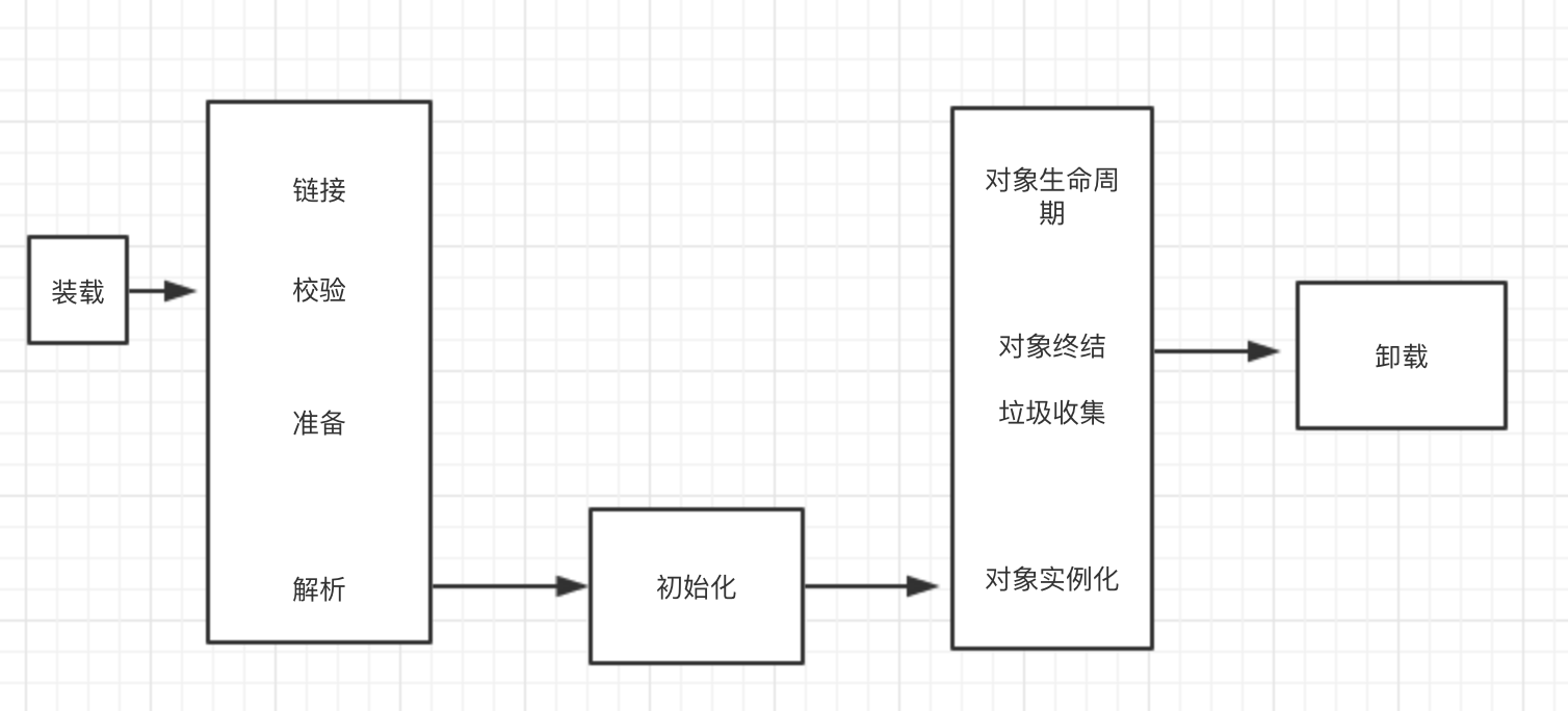 完成之后,类型即可初始化,初始化之后类的对象就可以正常使用,直到一个对象不再使用之后,将被垃圾回收,释放空间。 当没有任何引用指向Class对象时将会被卸载,结束类的生命周期。