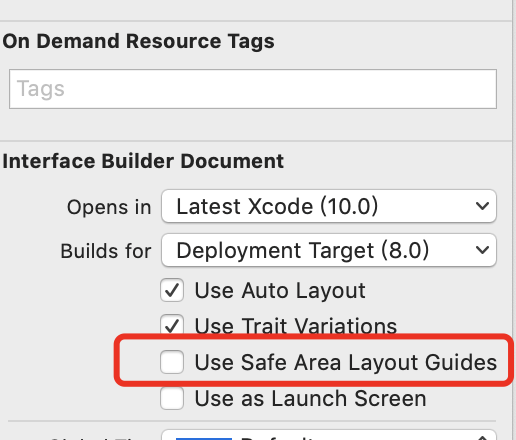 Safe Area Layout Guide before iOS 9.0 [12] 剑客十八 2019-05-04 979 阅读1分钟 应公司要求,最近开始用swift来写项目,但今天莫名其妙报了个错误,如下:解决方案:去掉勾选safe Area Layout Guides