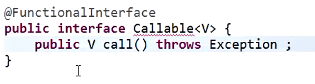 - 而且它也是一个函数式接口,有个call()方法,有个返回值,返回值类型为Callable接口中的泛型决定
