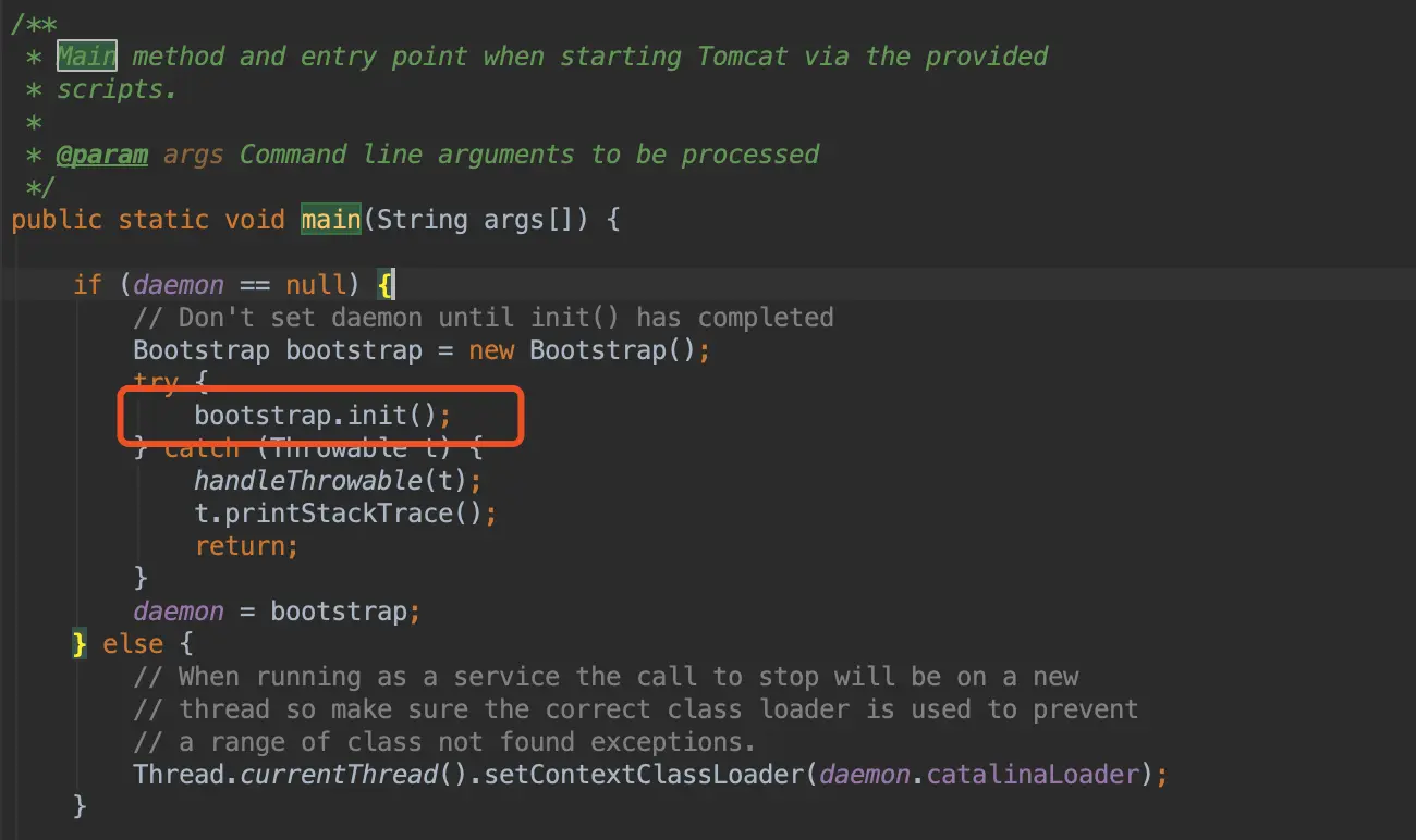 Tomcat的启动入口在Bootstrap.class中