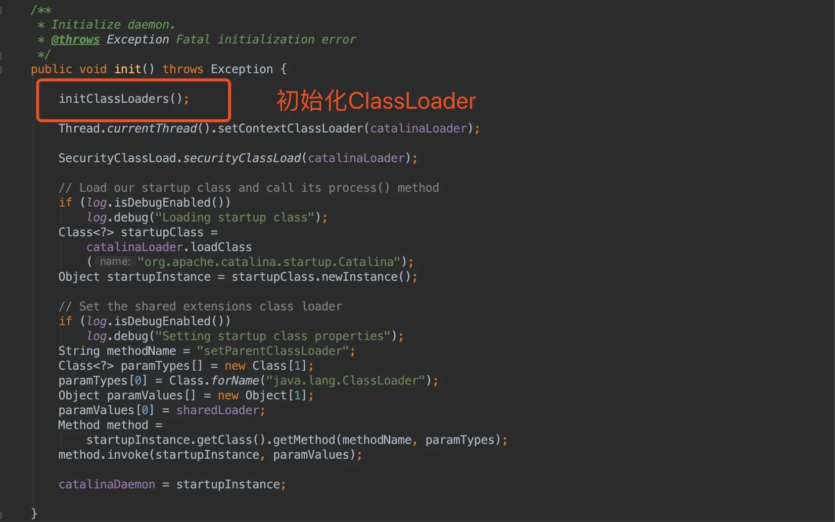 在Bootstrap中我们看到,它先用SharedLoader初始化了Catalina类。