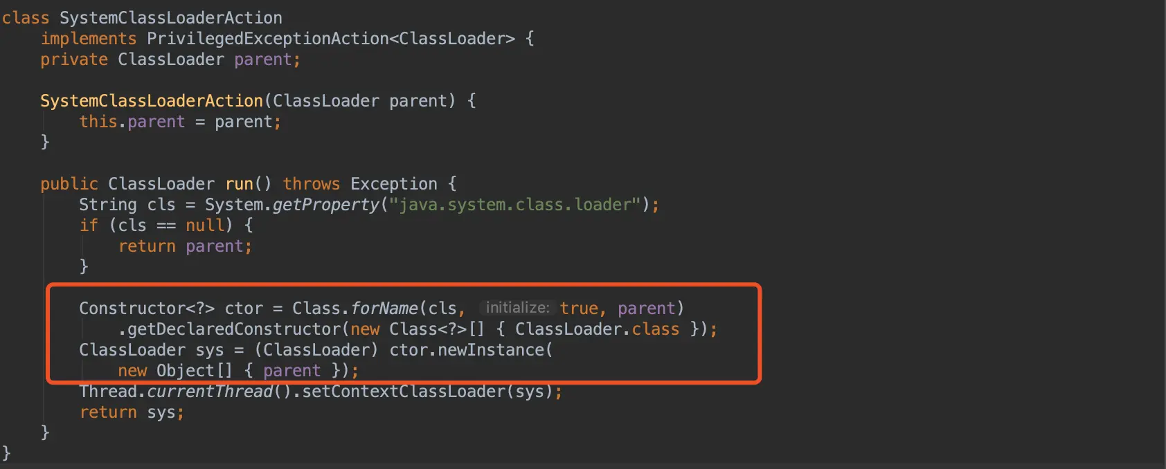 private static synchronized void initSystemClassLoader() {