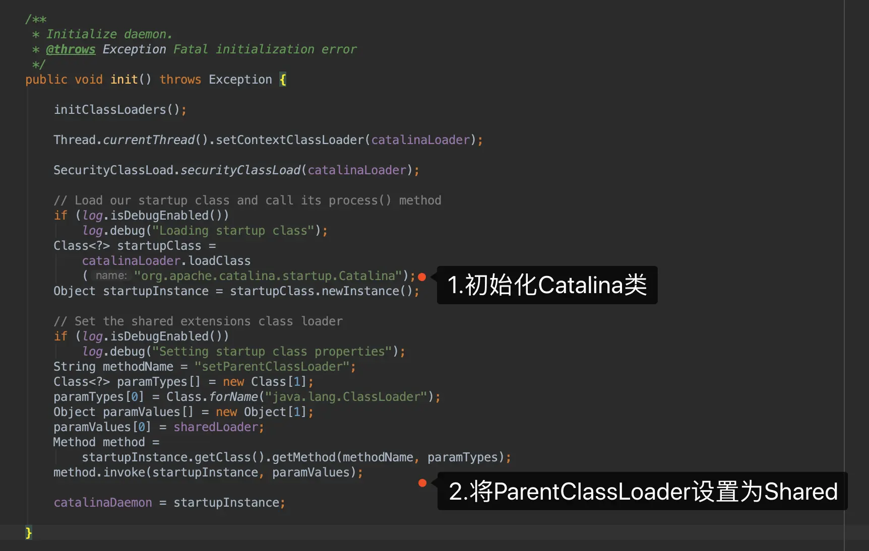 catalinaLoader,并将commonLoader置为父加载器 - 初始化加载