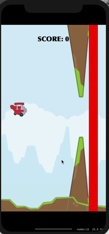 - 两个石头后面添加一个得分检测节点(SKNode),用于判断飞机飞过石头得分的