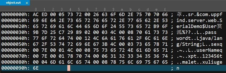 类似于我们Java代码编译之后的.class文件,每一个字符都代表一定的含义。序列化和反序列化的过程就是生成和解析上述字符的过程!