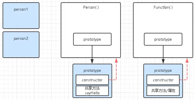 console.log(person1.sayHello === person2.sayHello) // true,同一个方法图示如下: