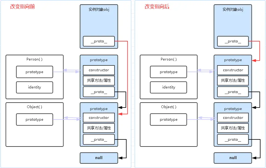 ③ 手动将实例中的__proto__属性指向相应原型对象。