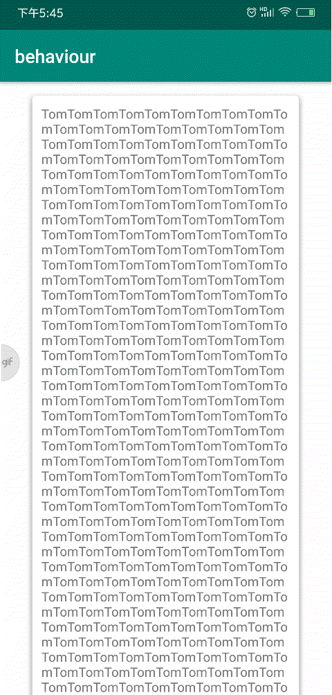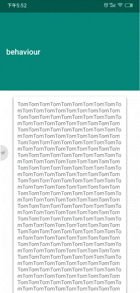 scroll一起使用。当滑动view 向下滑动时,响应view截断滑动view的滑动事件,待响应view自身全部显示完后,再把滑动事件还给滑动view; 当用户向下滑动是scrollView时,关注点不在滑动view本身,此时出现响应view的内容,符合material design设计理念