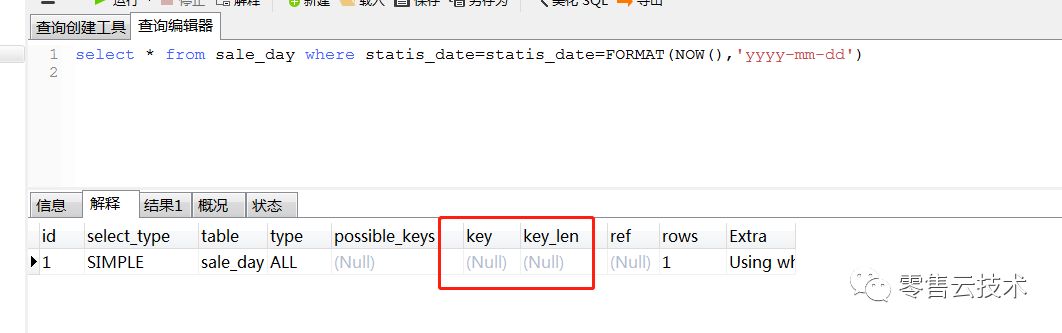 我使用的是Navicat for mysql 工具,右击有个Explain Selected 分析sql,可以看到执行计划。