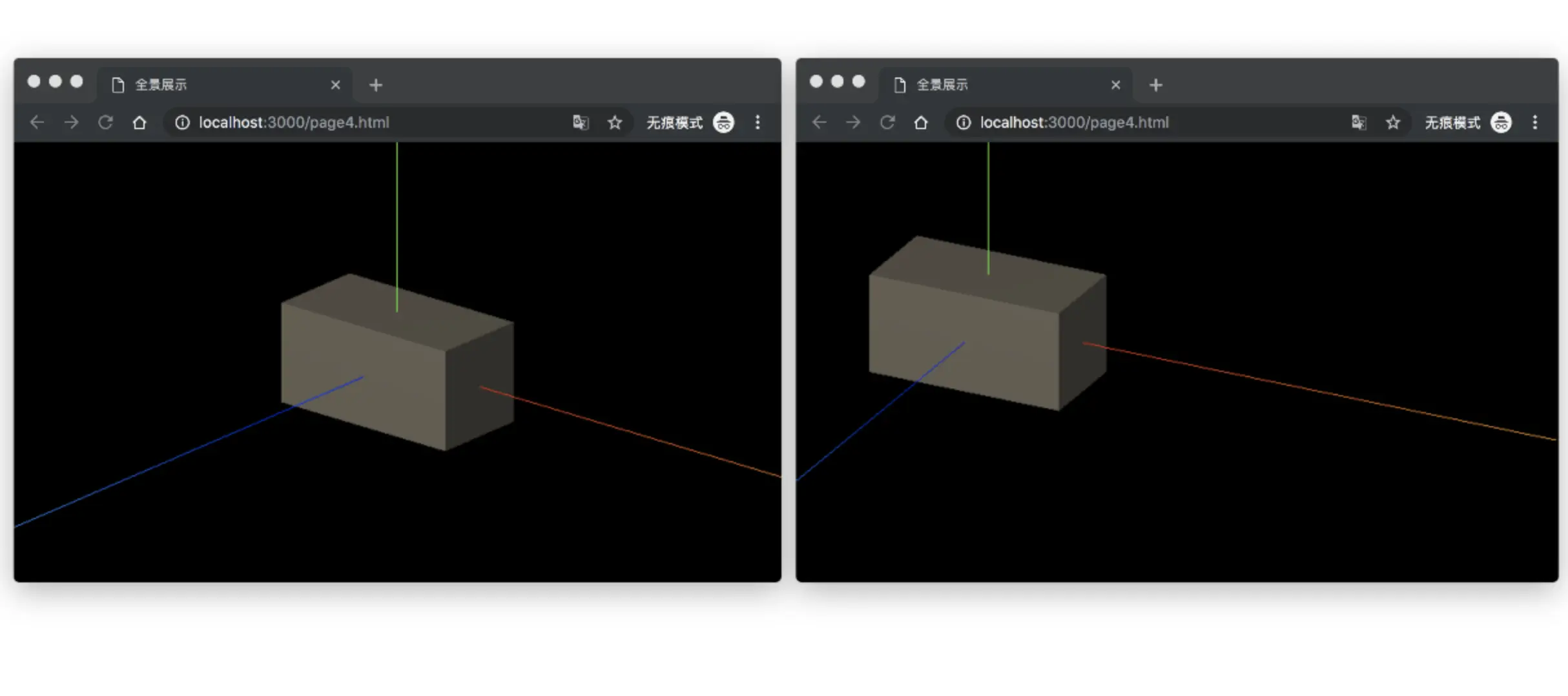 右侧是 OrthographicCamera(正交投影相机)他不具有透视效果,即物体的大小不受远近距离的影响,对应的是投影中的正交投影。我们数学课本上所画的几何体大多数都采用这种投影。