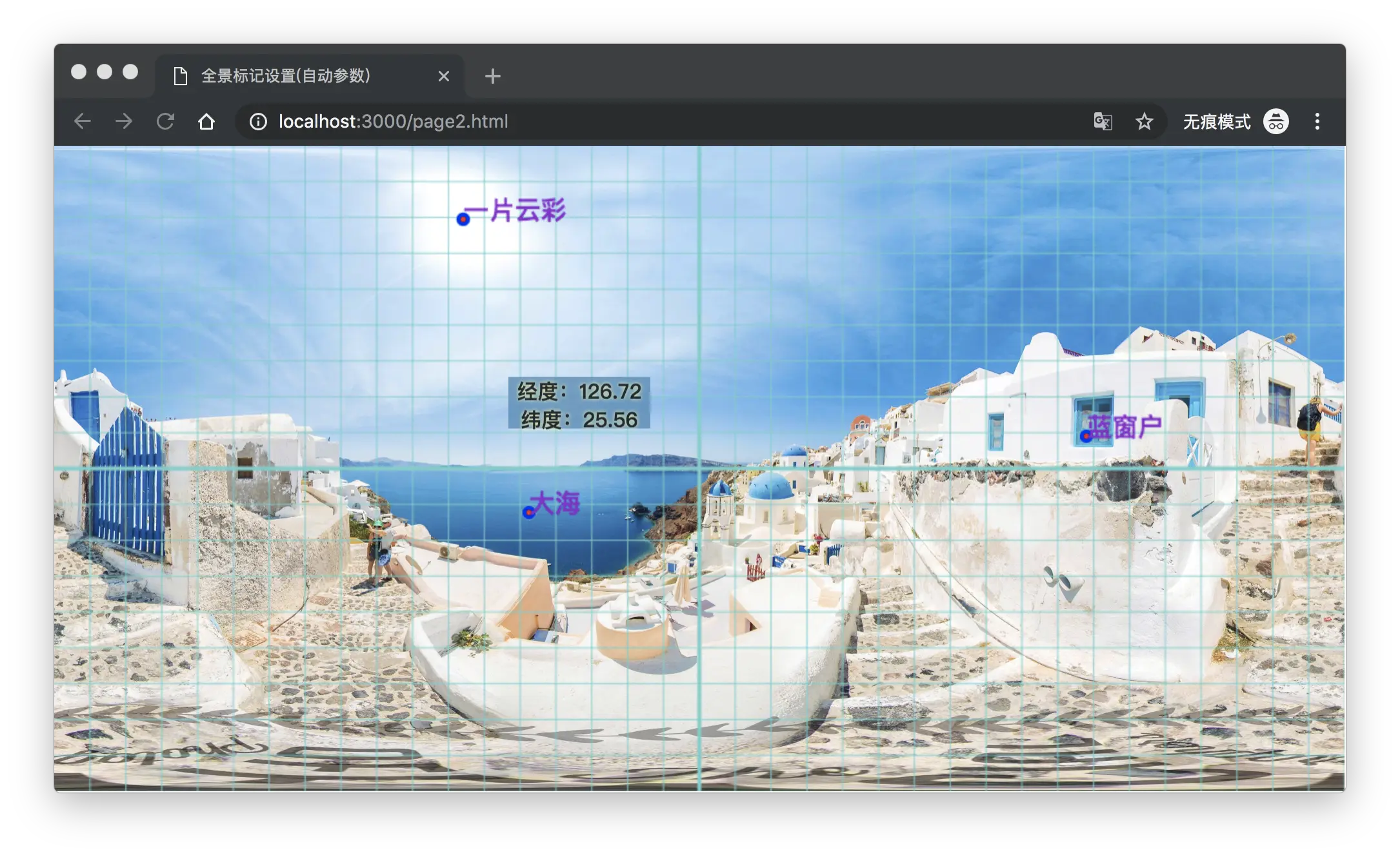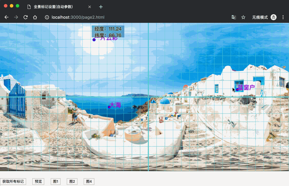 上面的代码中,我们实现了全景预览和全景标记的功能,下面,我们要把这些功能封装成插件。