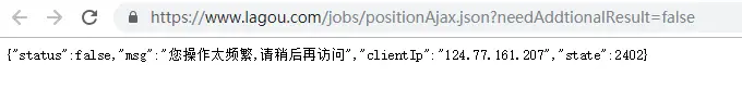 {"status":false,"msg":"您操作太频繁,请稍后再访问","clientIp":"124.77.161.207","state":2402},机智的我察觉到事情并没有那么简单
