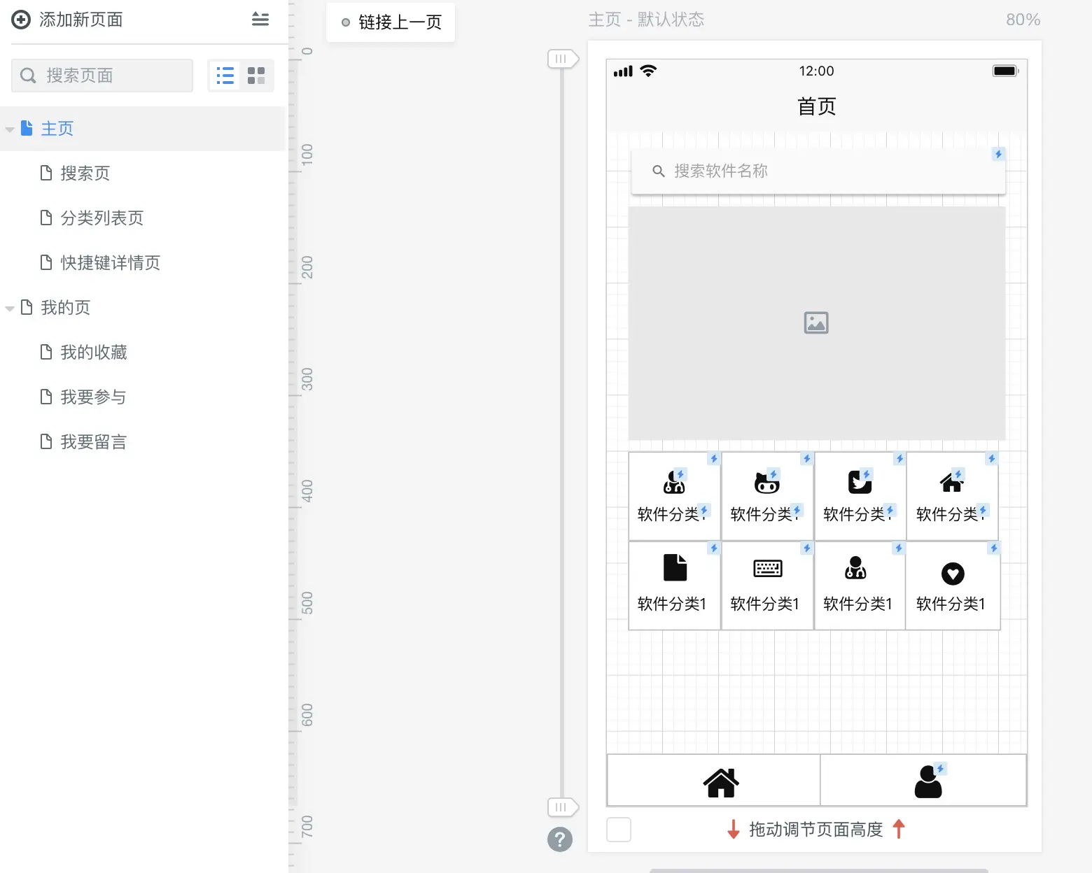 既然有了想法,第一步还是得把自己的产品原型画出来,推荐使用 墨刀 这款原型工具,因为简单~,产品的页面 得有(首页、软件搜索页面、软件查询页面、快捷键查询页面)这几个核心页面。