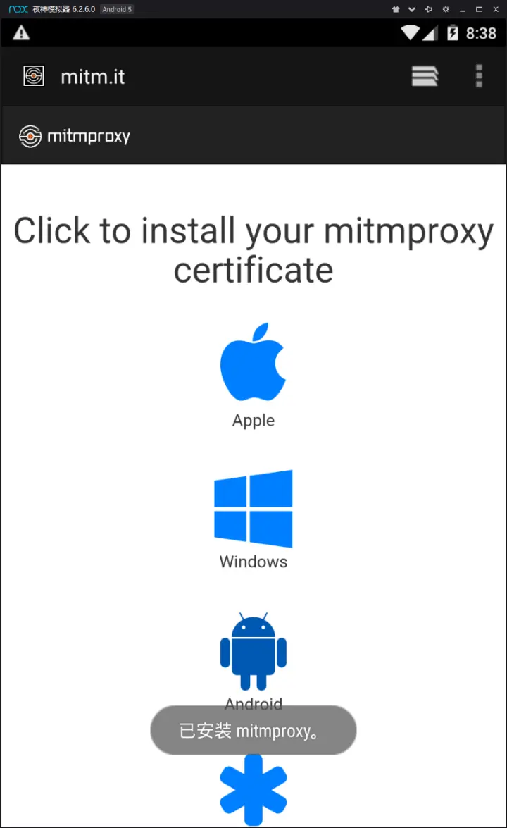 mitmproxy -p 8888启动夜神模拟机