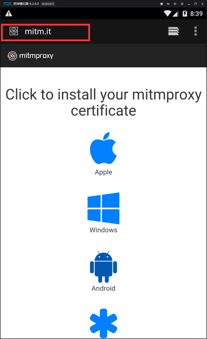浏览器打开mitm.it/