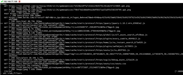 #set view_fiter= 回车2.域名找到baidu的请求