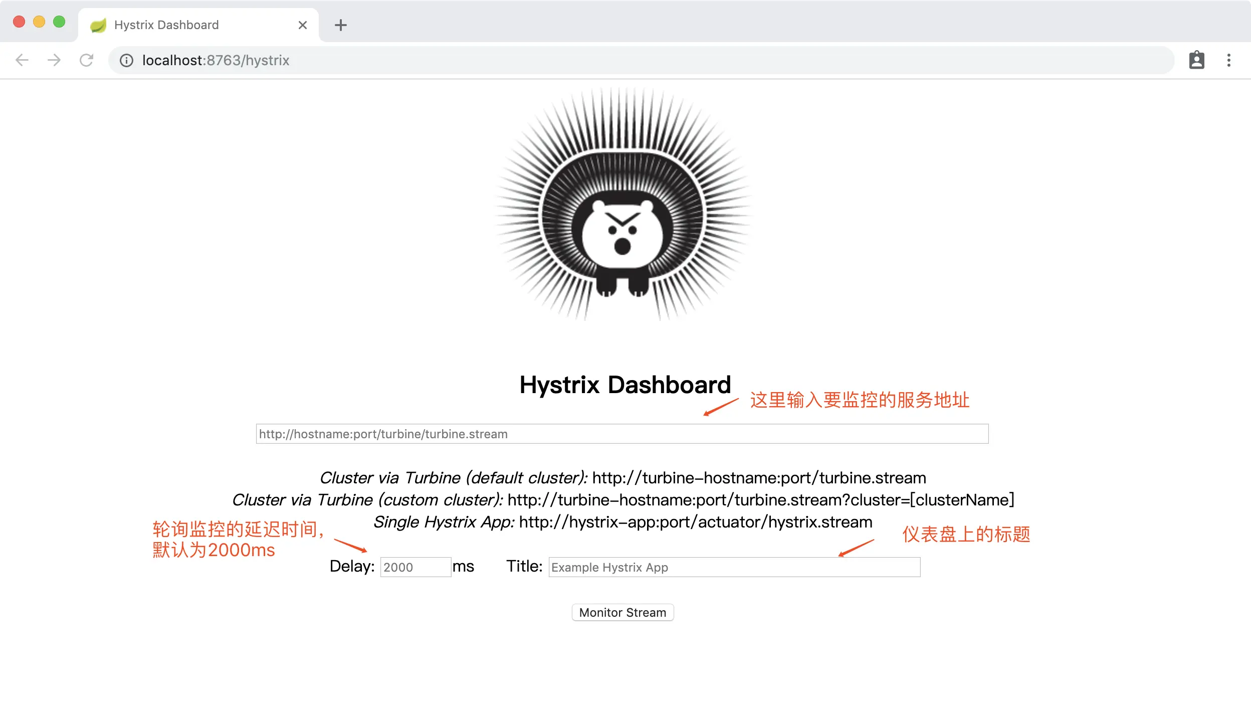 打开仪表盘地址:http://localhost:8762/hystrix