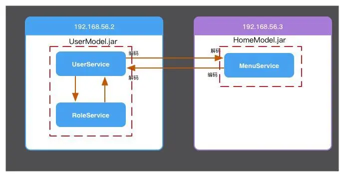 之前在[dubbo源码解析-本地暴露]的时候就有很多朋友留言问到,这个本地暴露有什么用.首先,dubbo作为一个被广泛运用的框架,点滴的性能提升,那么受益者都是很大一个数量.这也就是为什么JDK的源码,都喜欢用位运算.比如图中的UserService和RoleService服务是在同一模块内的,他们直接的通信通过JVM性能肯定要比通过网络通信要好得多.这就是为什么dubbo在设计上,既有远程暴露,又有本地暴露的原因.